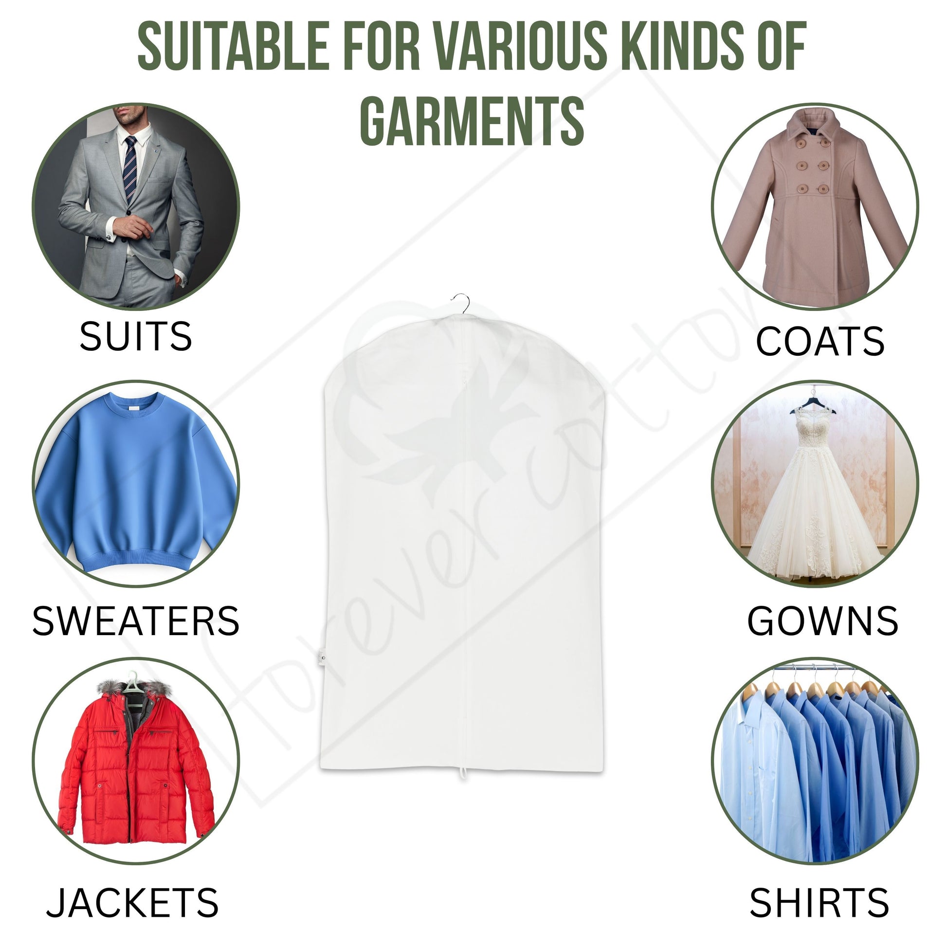 Size: We offer the following four sizes in cotton suit bags/coat covers: